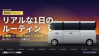 軽貨物 軽貨物ドライバーのリアルな1日【企業配×Uber Eats×出前館掛け持ち】 こんにちは、コツコツブログのとしです。 このブログでは、企業配をメインに稼働し始めて5カ月経った私の日常をお届けしていこうと思います。 個人事業主としてやっていけるのだろうか、軽貨物の仕事って実際どんな生活になるんだろう、と、... 2026.04.19 軽貨物